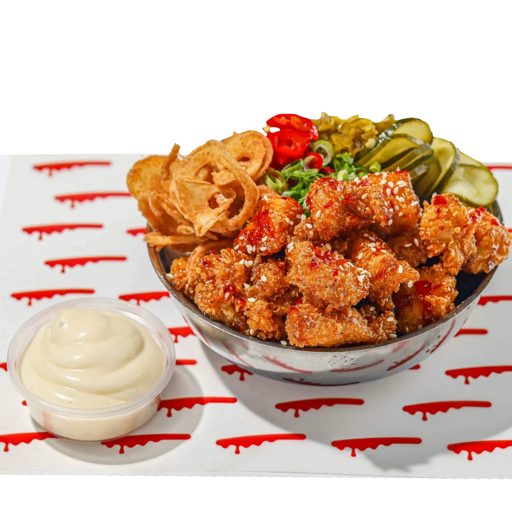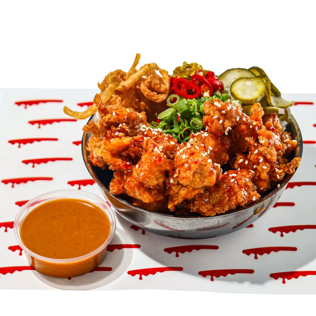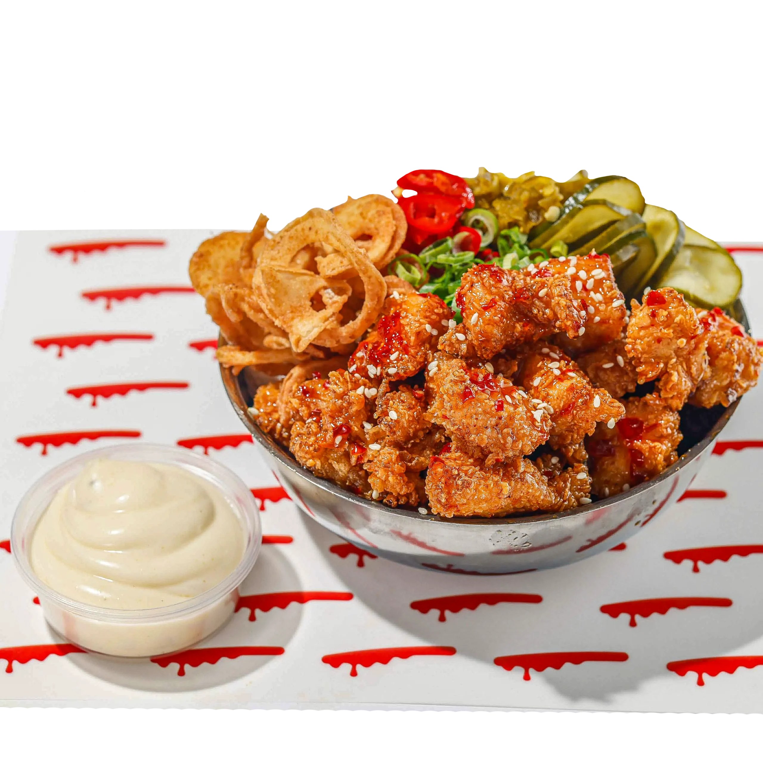 Sweet Chili Peanut Sos, Karışık Turşu, Çıtır Soğan,